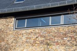 Der Innenausbau folgt einer moderner Formensprache und schafft in dieser Weise einen spannungsreichen Kontrast zwischen alten und neuen Bauteilen.